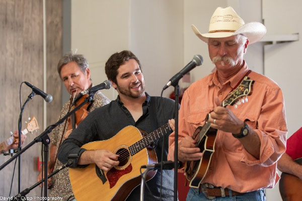 The event was held in the assembly room and was well attended by the San Diego bluegrass community and folks from beyond, all supporters of Dennis. Among the attendees were Dennis’ family members, including outstanding guitar virtuoso son Zach Caplinger.
