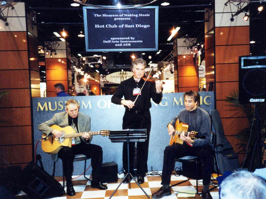 Hot Club of San Diego at the Museum of Making Music (Alain Cola, Vitas, Patrick Berrogain).