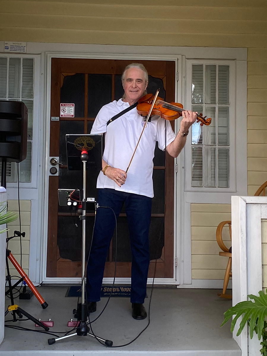 From fellow fiddler Tom Cunnigham: “He is an amazing musician on fiddle and jazz violin… I always loved being on a gig with Chris. On mutual gigs we would work out some twin fiddle harmonies; he has a great musical sense of humor as we would throw in little punch lines, fitting in a lick from Popeye the sailor or some other cartoon in the middle of a solo. He is a unique individual and a San Diego treasure!”