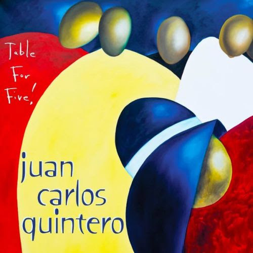 Jazz guitarist Juan Carlos Quintero has released nearly a dozen albums since 1990. Table For Five! is his latest effort, featuring a solid quartet along for the ride, including Eddie Resto, bass; Joe Rotondi, piano; Aaron Serfaty, drums; and Joey DeLeon, percussion. Recorded and mixed deftly by Talley Sherwood at Tritone Studios in Glendale, California, the ten-track disc showcases Quintero and the guys riffing effortlessly through eight Real Book standards, along with two Quintero originals.