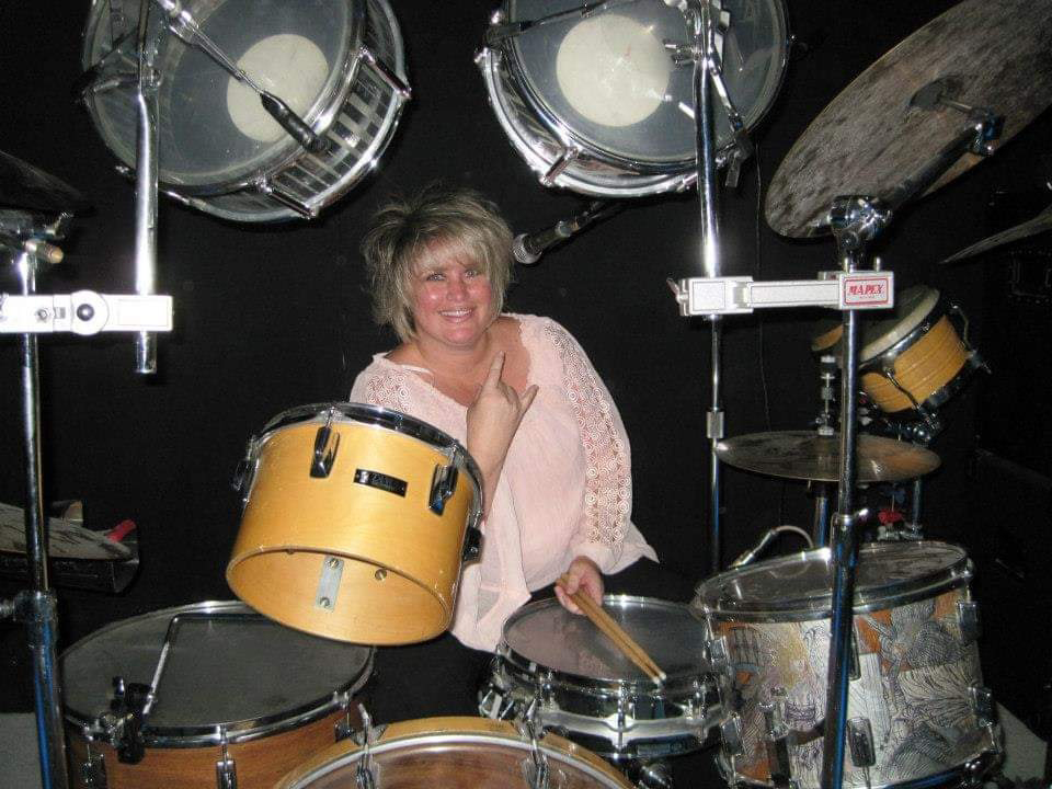 In 1998, at age 28, Bailey wanted to be done with the church affiliation as she recalled: “I wanted to seriously pursue music and have a fresh start, so I contacted an uncle that lived in Arizona whom I stayed with for about a year. At that time, I met a musical couple in Sedona—Laurie Burke and Tony Carito—who were performing and needed a drummer,” she said. “Following that I was in a fun pop band there, a quartet called The Girlz. That band turned into Rachel and the Rock-Its; we were together about a year,” she recalled. “That was also the time I really began to hone my singing and drumming chops as I would attend open mics and karaoke nights. At the open mics there was a guy there named Grateful Fred, who was the main drummer,” she continued. “He took me under his wing and said just get up there on the drums and figure it out as he would give me directions on what to do…whoever would come up to perform I had to figure out what to play behind them, it was a priceless learning experience for me.”