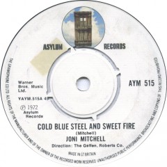 Also, in 1972, a great song that was an A-side by Joni Mitchell came and went without much of a splash. From her transitional For the Roses album, “Cold Blue Steel and Sweet Fire” was a superb track, probably the best on the disc, and shows Mitchell nudging her folk roots into jazz territory.