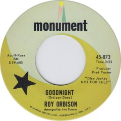 “Goodnight” was released in early 1965, just after Roy Orbison conquered the world with “Pretty Woman.” This tune is omitted from most of the available compilations and greatest hits packages, it went only to number 21 on the charts (a higher spot than “Blue Bayou,” “Leah,” or a few others that usually make the cut). It is a return to the operatic build-up style of many of his earlier hits, the final high “goodnight was just a lie” line is good for goose bumps. There is a live version on many websites; the studio version is better.