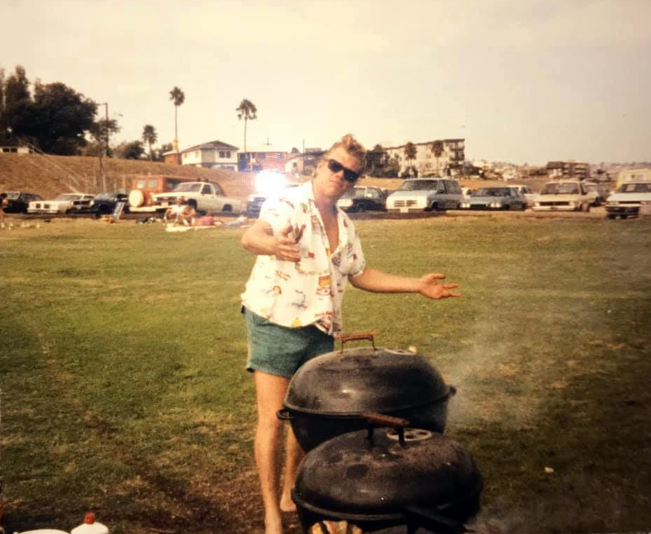 I first met Bruce sometime around 1982 or’83, shortly after he moved from Phoenix to San Diego. My first recollection of ever seeing him, was sitting on a chair in front of his little house off of North Park Way, long blond hair—like Gregg Allman’s—unbuttoned vintage Hawaiian shirt, and playing a vintage National Dobro. If my memory serves me right, he was having a yard sale, selling mostly vintage clothes, furniture, and accoutrements, which he did throughout the eighties and nineties.