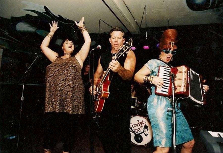 “I think about 30 days after that Belly Up gig we did a half-live, half-studio recording at the Belly Up. We put out her first tape called Burlesque Swing, a bunch of double entendre songs which was all Candye in the day. She shopped that tape and that got us a gig on the East Coast for the High on the Hog Festival. It also got her the first record deal with Antone’s Records in Austin. We also did SXSW.”