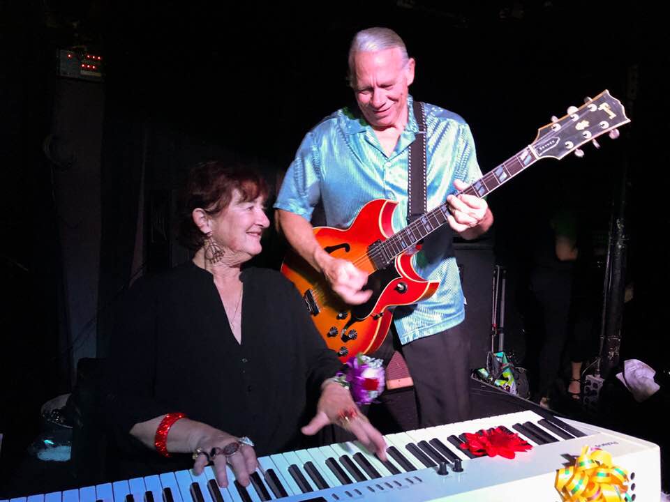 Sue Palmer had this to say: “Steve and I have been friends and musicians together since the ’80s. We have always loved playing with each other–he loves boogie woogie and has so much joie de vivre, it’s hard for me to resist playing with him! We ended up touring with Candye all over the world, and are still playing together. Steve loves to play and has the strength and motivation to wow the audiences, no matter how long the gig is–everyone calls on him at the end of a set because he’s just getting warmed up! He’s very athletic and used to jump from the stage to the tops of tables, not missing a beat. Now that he has a wireless guitar, who knows what will happen?!