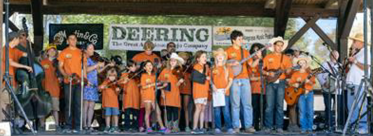 Summergrass Kids Camp performs on the main stage on Sunday with their teachers. Photo by David Cupp.