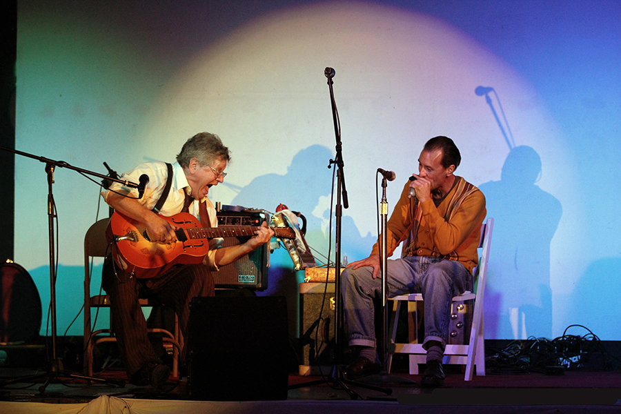 A lot of blues guys, and I get it, would kind of criticize me for that because some of the comedy I was doing had nothing to do with the blues. It was almost, like, too surreal. We’d come out in giant blue boxes and a little puppet show, or we’d put funny masks on and dance around. I did all of that to get the attention of a totally non-responsive audience, as if doing CPR to them so they’d wake up and actually watch the band. Then, once we had their attention, I’d hit ‘em with a Little Walter song. Then I wouldn’t do any comedy for a while because they were all watching and enjoying themselves. That was the point.