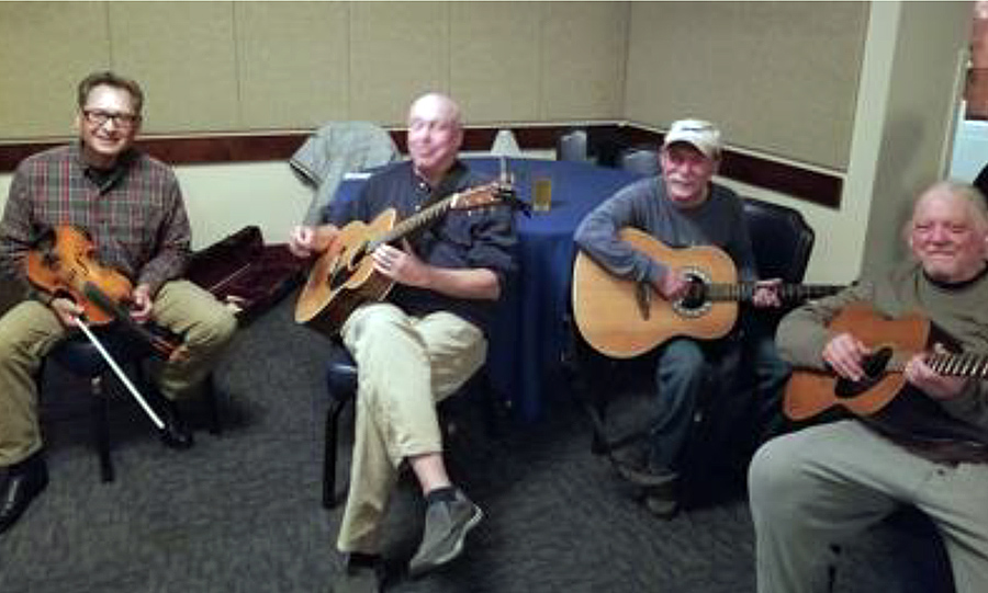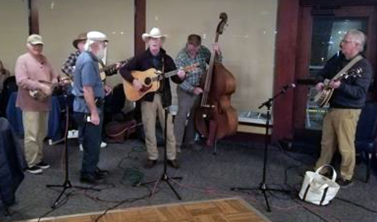 SDBSers John Deckard, Roger Taylor, Dwight Worden, and Alex Finazzo set up the sound system and things were off to the races! There were three separate pick up bands that performed during the event, with several individual players dropping in for stand in roles, including a trio of fiddlers and banjo player extraordinaire Lenny Bole, in addition to familiar faces Kit Birkett, Roger Taylor, Phil Levy, Dale Desmuke, Jim Blakemore, Jeff Haines, Nancy Wyatt, Dwight Worden, and lots more. There were also many new faces who came just to listen.