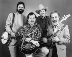 Country Gazette, 1986. Alan Munde, Gene Wooten, Billy Joe Foster, Roland White. Photo by Rick Gardner.