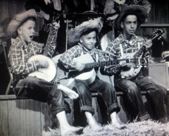 The Three Little Country Boys at the Foreman Phillips County Barn Dance, Baldwin Park, California, 1954. L-R: Eric White, Clarence White, Roland White. From the White family collection.