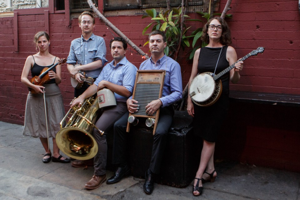G Burns Jug Band: Batya MacAdam-Somer, Clinton Davis, Jonathan PIper, Tim McNalley, Meghann Welsh. Photo by John Hancock.