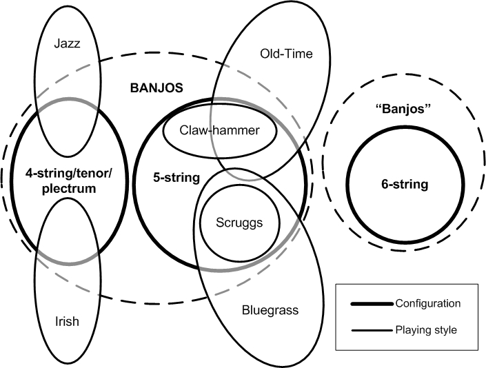 The banjo is essentially defined by the fact that its strings vibrate against a round “head,” very similar to a drum head. It’s this head that gives the banjo its unique tone, which is sharper but less sustained than a guitar. After that, things get a little complicated…