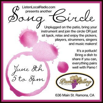 June 8th –Song Circle Potluck at Pamo! Join us from 5 to 8 for an unplugged song circle. Details here!