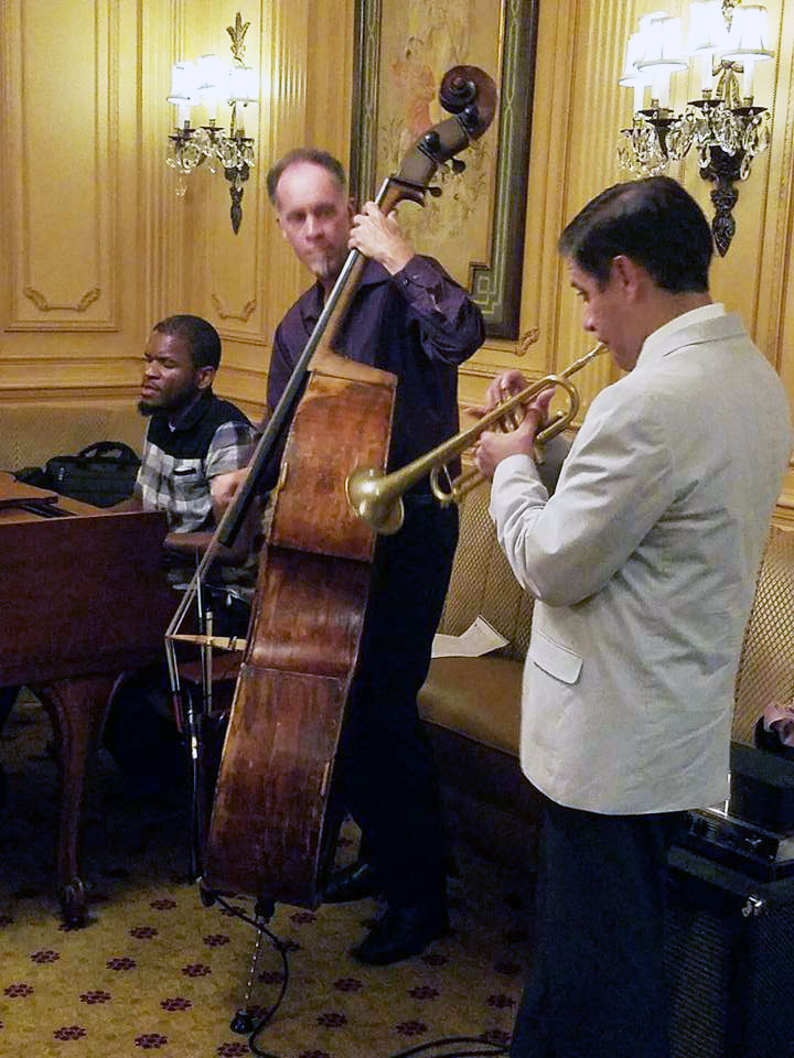 On the other end of the spectrum from Copley Symphony Hall is Gilbert’s regular Friday night gig at the Westgate Hotel in the Plaza Bar, a very small room with perfect acoustics, a serviceable grand piano, and a deserved reputation as a “listening room.” “I’m coming up on a milestone at the Westgate. I started there five years ago in October. The acoustics there are unbelievable–it’s one of the best rooms I’ve ever played in my life. I think the listeners would agree. It only seats about 40 people, so you need to get there early because it’s going to fill up. And if you get a seat, you better be quiet and listen because that’s what that room is all about, and I love it. I call it my laboratory because I can really get into the frame of mind where I stop thinking and just create in that room. I stop worrying about things. It’s like my therapy–I can just let it all out and do my thing. And some of the most amazing music has come out of that room on Friday nights. You’ve got to respect the music and let the music take you where it’s supposed to take you. You can’t be worrying about other things because that’s not what music is all about. Music is about exploring and taking chances.”