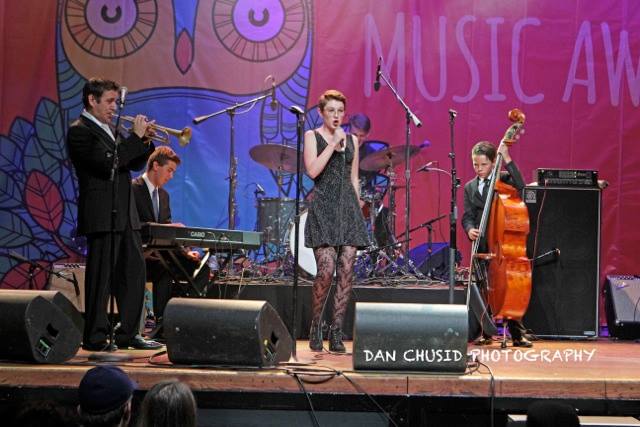Zion Dyson sings at the San Diego Music Awards with Gilbert and the Young Lions. Photo by Dan Chusid.