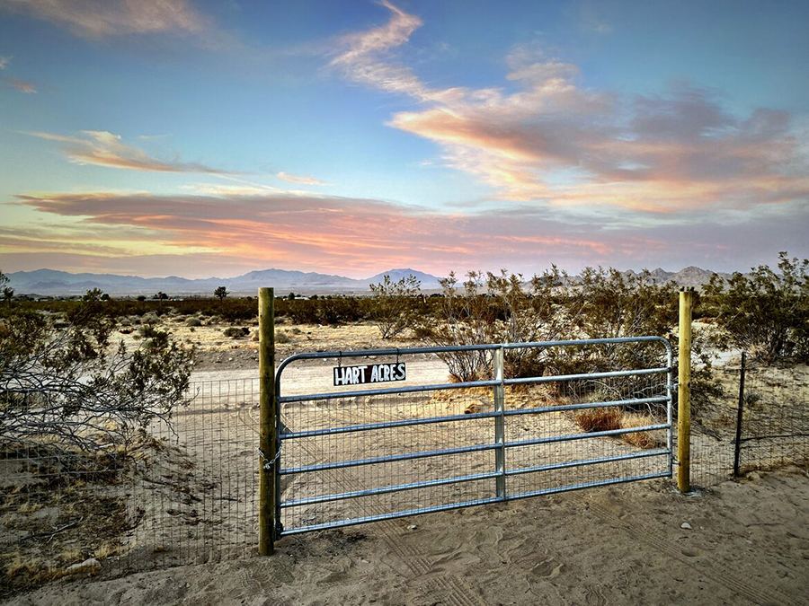 Or you can do like I did in March and include it in a Grand Tour of Southern California deserts. My wife and I had van-camped our way up from Anza Borrego (bighorns!), Salton Sea (Salvation Mountain!), Joshua Tree National Park (well, you know…), before making the easy hour drive to Hart Acres from the east. I will tell you what—you can see a LOT of empty desert in one hour. But once you start getting back into populated territory, a short drive down a graded dirt road brings you to the doorstep of Hart Acres.