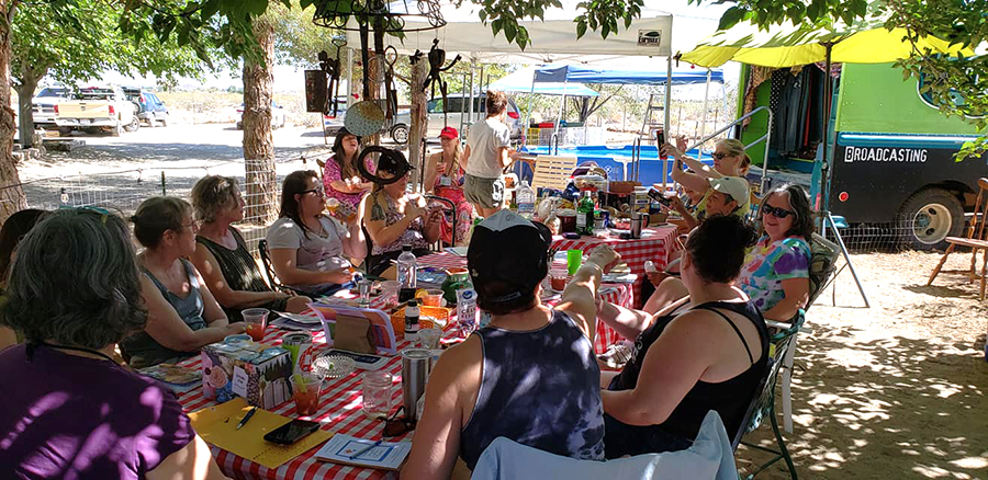 Hart Acres is the newest destination for San Diego musicians wanting to expand their horizons. A couple years back, Cathryn Beeks and her husband, Jon Edwards, answered a family call up into the high desert of the Mojave. It took a lot to achieve escape velocity, breaking out of the orbit of Cathryn’s ongoing musical events and Jon’s live music support career. First envisioned as temporary, it became the solid base for their next launch: Hart Acres. To date, they’ve installed a manufactured home, renovated their old home into a guest house, constructed a first-rate camp toilet and—of course—made a miniature golf course. They hosted their first guests this spring and had their first major campouts in June. Fall season will see activities ramping up. It’s a ramping camp!