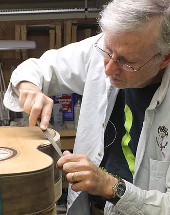 Greg DeLuis: From a very early age, I loved guitars. I remember so vividly when, in high school, I picked up Irving Sloane’s book, Steel-String Guitar Construction, how much it affected me, and basically sealed my fate of becoming a luthier. Even though I was a sculpture major in college and intent on being a fine artist, I always wanted to work with guitars. The chapter on Jimmy D’Aquisto really opened my eyes to the highest form of luthery, which is to say handcrafted guitars as a medium of fine art.