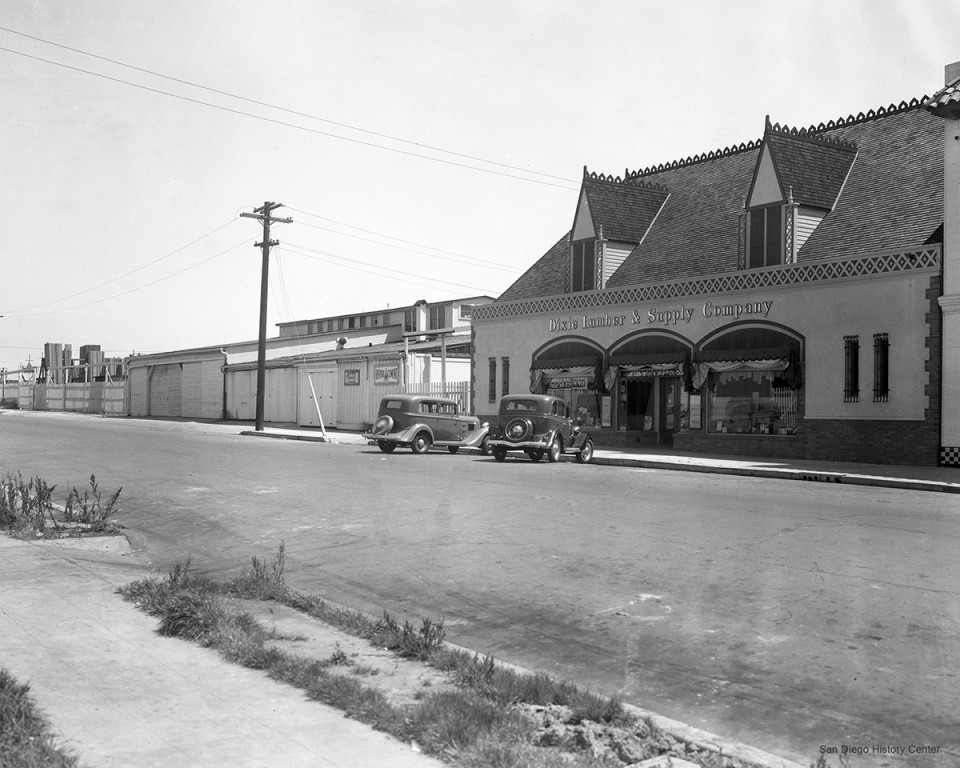 Queen Bee’s building exterior in 1935. It used to be the Dixie Lumber & Supply Company. Photo courtesy of the San Diego History Center.