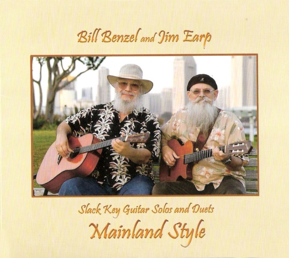 Instrumental guitar fans will be glad to hear that noted Hawaiian slack-key guitarist Jim Earp has teamed up with Bill Benzel for an album of slack-key duets, Mainland Style. The dozen tunes feature Earp on electric nylon-string guitar and Benzel on either baritone or steel-string acoustic. The mixture of originals by the two and familiar standards are all played in slack-key tunings. The selections cover a pleasing palette of styles, some touching on Hawaiian traditions, others hitting jazzy rags, folk rock, and the Beatles, all immaculately recorded. A lot of choice fingerpicking is combined with a calm, dignified respect for the technique.