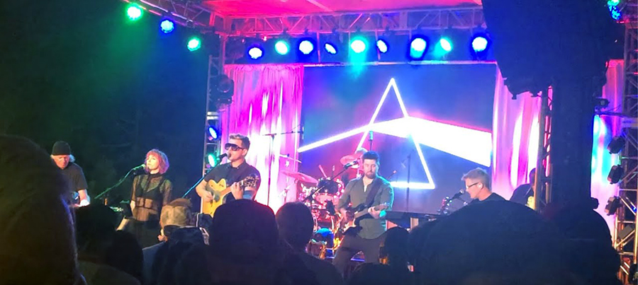 Ironically, Tarr wasn’t a big Pink Floyd fan before becoming part of Pink Froyd. “I must admit that I didn’t really know much about Pink Floyd until I joined the band. I had just thought they were a kind of branch of classic rock that people other than myself obsessed over, and that kind of put me off, finding out too much more about them. I was a jazzer, a funker, a soul boy, and a hip-hop head and had not felt the need to acquaint myself with Pink Floyd. But how wrong I was.” He credits the change of heart to “Mr. Tom Quinn, the leader of Pink Froyd at the time and still the best Dave Gilmour, who is not actually Dave Gilmour that I have ever seen ‘in the flesh,’” Tarr said. “I was immersed in the utterly unique world of Pink Floyd and even though the band had its ups and downs and many, many, personnel changes, I kept coming back to it because of the music itself. Now that Tom has moved on, it has fallen to me to keep Southern California’s Pink Floyd flag flying.” Tarr now sings most of the lead vocal parts. “I have also renamed and rebranded the band as the Floyd Syndicate. I wanted to call it The Floyd Cartel, but too many people begged me not to,” he joked. “We aim to keep playing the music as faithfully as we can, complete with note-for-note solos from the studio recordings and a multi-media show put together by none other than the Swiss army knife of talents that is Sandi King.” King also sings with the band. “She raised the roof at last year’s Mammoth Village Fest with her absolutely face-melting rendition of ‘Great Gig in the Sky’ from Dark Side of the Moon,” he said.