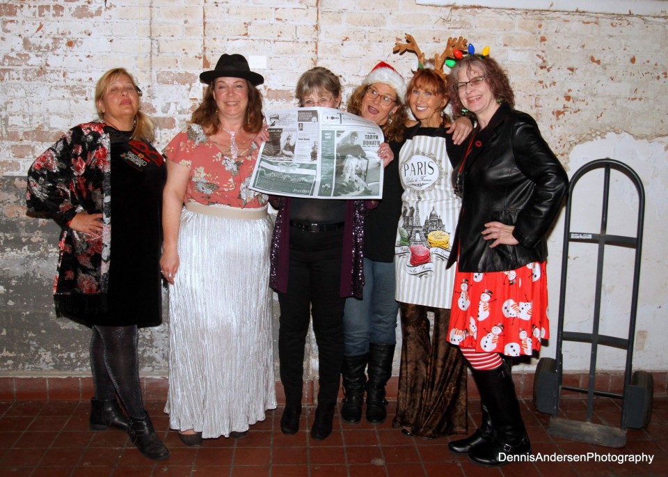 Abbott w/ Kim May, Carina Wheatley, Marcia Claire, Suzanne Shea, & Claudia Russell at the 2018 Troubadour Holiday Party. Photo by Dennis Andersen.