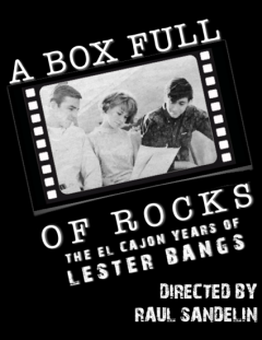 In 2010, Lester was given a plaque on Grossmont’s Walk of Fame. The plaque is located in the Grossmont quad at the base of the library stairs. In 2013, my small circle of friends and I produced the feature-length film documentary A Box Full of Rocks: The El Cajon Years of Lester Bangs. This film recorded live interviews with many of Lester’s childhood friends, including Jerry Raney, Jack Butler, Rob Houghton, Gary Rachac, and Milt Wyatt, plus biographer Jim Derogatis. A Box Full of Rocks sought to establish the early influences–Lester’s mother, the death of his father, his religious upbringing, the El Cajon music scene, which shaped his character and writing. In 2016, we followed up with another feature film documantary Ticket to Write: The Golden Age of Rock Music Journalism, which dedicated several sections to discussing Lester’s writing career at Rolling Stone, then Creem, magazines.