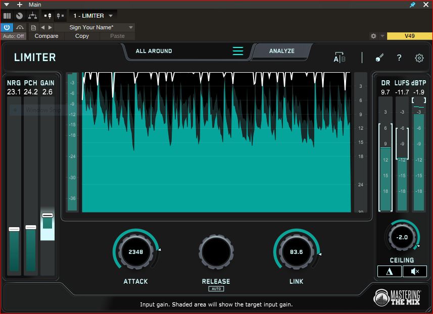 The processing and workflow of LIMITER takes a very intuitive approach, in that there are inherently several inter-related tasks to consider, and making those decisions is made easier by the included presets and custom audio analysis and visual feedback the plugin provides.
