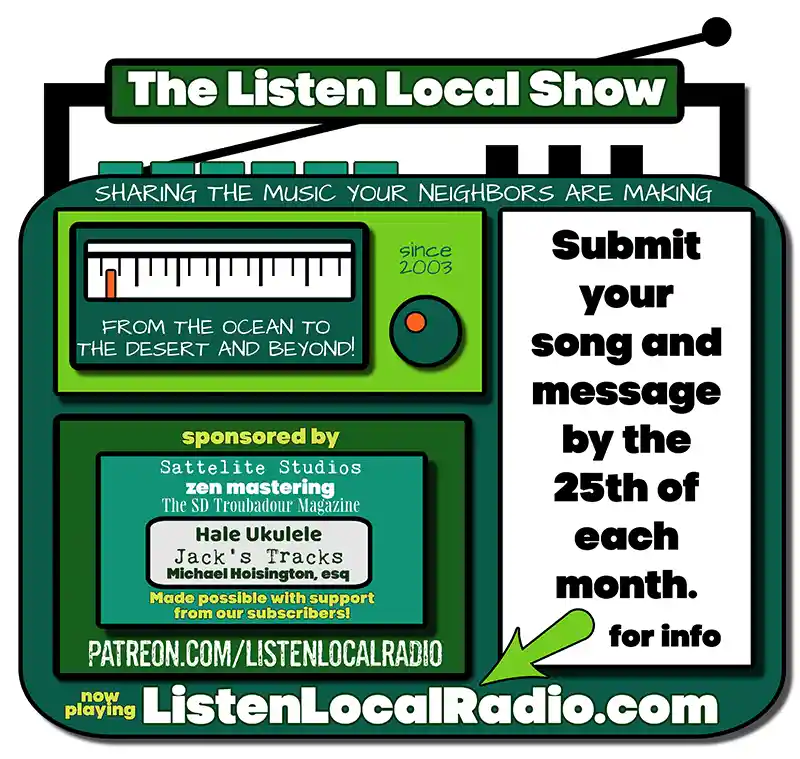 Once upon a time I moved to San Diego. It was November of 1999 and I fell in love with this city’s music and its makers. Inspired by all the incredible talent, I began hosting songwriter showcases, camping and music festivals, and co-hosting a podcast all in an effort to share the music being made here. I called my brand Listen Local and in October of 2003, Hotrod Harris gave me the money to buy my domain name and start a website. I am beyond grateful for all of the music, adventures and fun I’ve experienced since then and I’m proud to be celebrating 20 years of Listen Local this October. Please save the date, October 7th, 2023 for the return of Band Camp, details to be announced in the coming months. Thank you to everyone who has ever played or attended a Listen Local event and to those who continue to support Listen Local via Patron.com/listenlocalradio and HUGE LOVE to Liz Abbott for giving me this column each month! I look forward to sharing the monthly Listen Local Show podcast as well as episodes of our musical talk show, Listen Local Lounge at Satellite each month. Thanks for reading and I hope to see you at a show! xo Cathryn