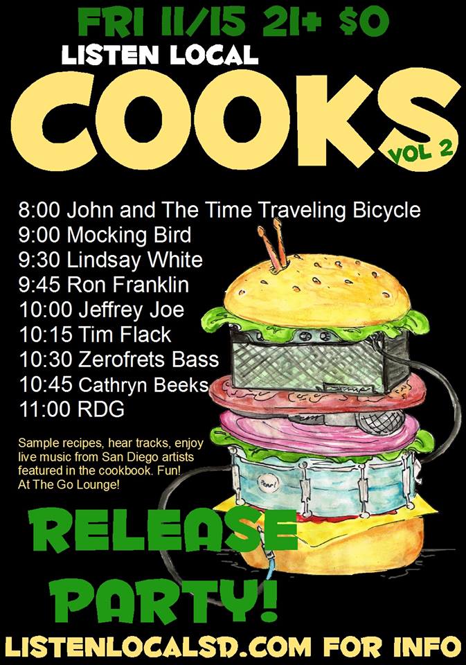 Musical do-gooder Cathryn Beeks has been working hard in preparation for the digital release of her music compilation/cookbook called “Listen Local Cooks Vol. 2” on November 15th at The Go Lounge in La Mesa.