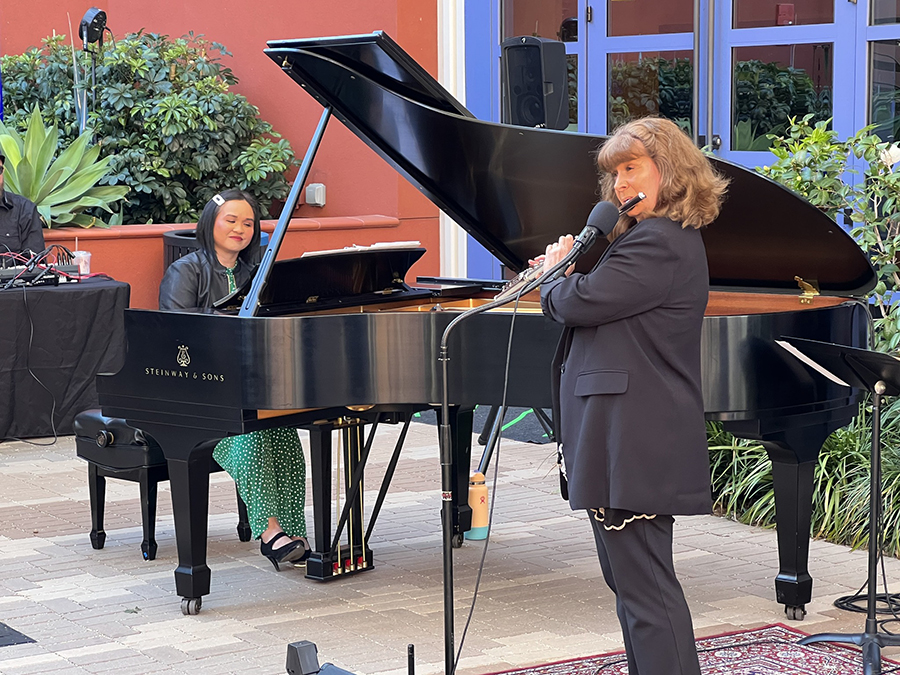 “I started on a four-string guitar in Brooklyn when I was four years old, and my dad taught me The Girl from Ipanema. And when we came out to California, I finally got a six-string guitar and was a very serious guitar player. I thought playing the guitar was going to be my thing forever. I was serious about playing jazz standards on the guitar and classical etudes as well. Everything I was doing was by ear on the guitar because I didn’t know how to read music at that point. I played from the age of four to 16 on guitar, 12 years playing strings, and then, suddenly, I came in contact with a flute.