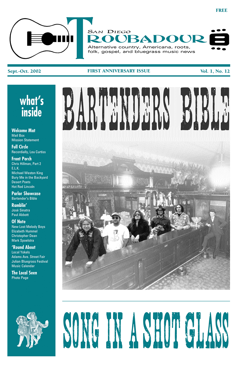 Bartenders Bible on the cover of the Troubadour (Matthew second from left), September 2002.