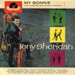 It was the first day of summer on June 22, 1961 when John Lennon, Paul McCartney, George Harrison, and Pete Best found themselves at Fredrich-Ebert-Halle in Harburg, Germany, to cut their very first professional recording. Liverpool’s most famous quartet was in the middle of their second (of five) German expeditions where they were woodshedding six hours a night, eight days a week at an establishment called the Top Ten Club in the Reeperbahn district of Hamburg (infamous for its after hour offerings of strip clubs, prostitutes, drugs, and organized crime). At a time when the social mores of the era were having the lid blown off of conventional attitudes, it was here among the denizens of the Reeperbahn that the Beatles truly came of age, due in part to their budding friendship and musical collaboration with fellow Brit Tony Sheridan. Producer Bert Kaempfert heard Sheridan and the Beatles playing their mashed-up version of American rock ‘n’ roll at the Top Ten and thought that they made a vital sound together, so he made a series of recordings with them, mostly featuring Sheridan’s voice and guitar. A 45 rpm single was issued from these sessions on October 23, 1961, coupling an old Scottish folk ballad with a Christian hymn and dressing it up in Levis and black leather jackets (“My Bonnie [Lies Over the Ocean]” backed with “When the Saints Come Marching In”). No one knew it at the time but it was a record that would change the course of 20th century popular music by inadvertently bringing the Beatles to the attention of NEMS manager Brian Epstein and sparking into action a series of events that led to a worldwide cultural revolution. And Sheridan was an essential ingredient in that catalytic flint, which led to a musical explosion.