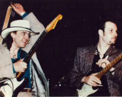 When I went backstage Jonny introduced me to Ronnie as “his guitar player,” to which Ronnie replied, “Nobody owns anybody!” Then, the first thing he said to me was, “Are you Jewish?” Ronnie’s parents were Holocaust survivors from Hungary, and I guess that was something he thought we could bond over. He then invited me into the green room, which at that time was a trailer in back of the Belly Up. Ronnie was on the cover of the current issue of Guitar Player magazine at the time, and I recall a couple of people coming into the trailer asking him to sign their copies, and Roomful’s trombone player and senior member Porky Cohen, teasing Ronnie about that, warning him not to get a big head just because he was on the cover of some guitar magazine. I also remember that I was wearing a silver silk suit with pointy black lizard skin shoes, and that Ronnie told me that the suit and the shoes are all fine, but what really matters is my heart.