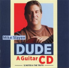 I take the CD, DUDE: A Guitar CD, 12 Notes & the Truth, from the jewel case and pop it into the CD player. The disk is by Mike Slayen, who has been making a name for himself as one of the finer classical guitarists in southern California. So I prep myself for a nice afternoon of classical guitar. I’ve got my slippers on, have my glass of white wine in hand, and am ready to settle into a recording of familiar classical guitar repertoire. I’m ready to hear a rendition of Austurias and perhaps a Bach prelude or two.