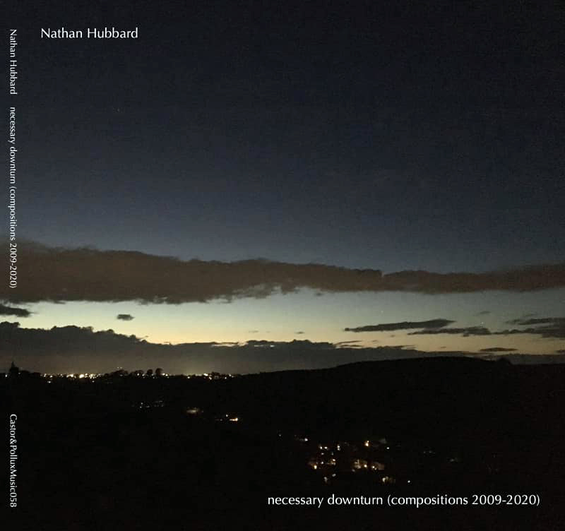 Nathan Hubbard has just released Necessary Downturn, a collection of nine compositions that he produced and revised during a12-year span, from 2009 to 2021. Restive and contemplative, this disk may be the music for our post-industrial, postmodern, post truth, globally warmed world.