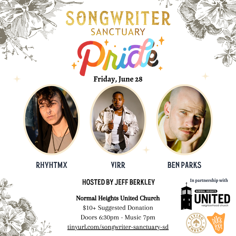 Alrighty, let’s get this Pride Party started and let me tell you about the fabulous artists who will be featured at this month’s Songwriter Sanctuary on Friday, June 28.