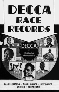 The big three dominated the market, accounting for more than two-thirds of the total blues and gospel releases. However, between 1921 and 1926 race records were issued on more than 15 different labels, such as Emerson, Pathe/Perfect, Arto, Cameo, Black Swan (acquired by Para-mount in April 1924), Edison, Gennett, Ajax, Brunswick, and Aeolian’s Vocalion label (sold to Brunswick in late 1924).