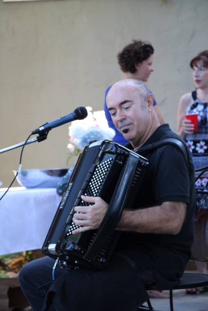 In 1996, I was determined to do whatever I could to get out of a gig. Specifically, it was a concert at LA’s Museum of Tolerance, and it was my first. Bandleader Yale Strom had exerted an inordinate amount of pressure on me to sing a few numbers–in my newly-acquired Yiddish–with Hot Pstromi. After I reluctantly, grudgingly even, agreed, Yale broke the news to the band: Fred Benedetti on guitar, Tripp Sprague on reeds, Jeff Pekarek on contrabass, Yale himself on violin, and Lou Fanucchi on accordion. The initial reaction to news of my guest appearance ranged from indifferent to what remains my favorite observation: “Yale” [deep sigh], “when they want to sing, you just have to let them.” I was so intimidated to sing in front of these amazing musicians, I forgot to be nervous about the audience. After the first number, I turned around and locked eyes with Lou. He gave me a big grin and nodded. I had an ally.