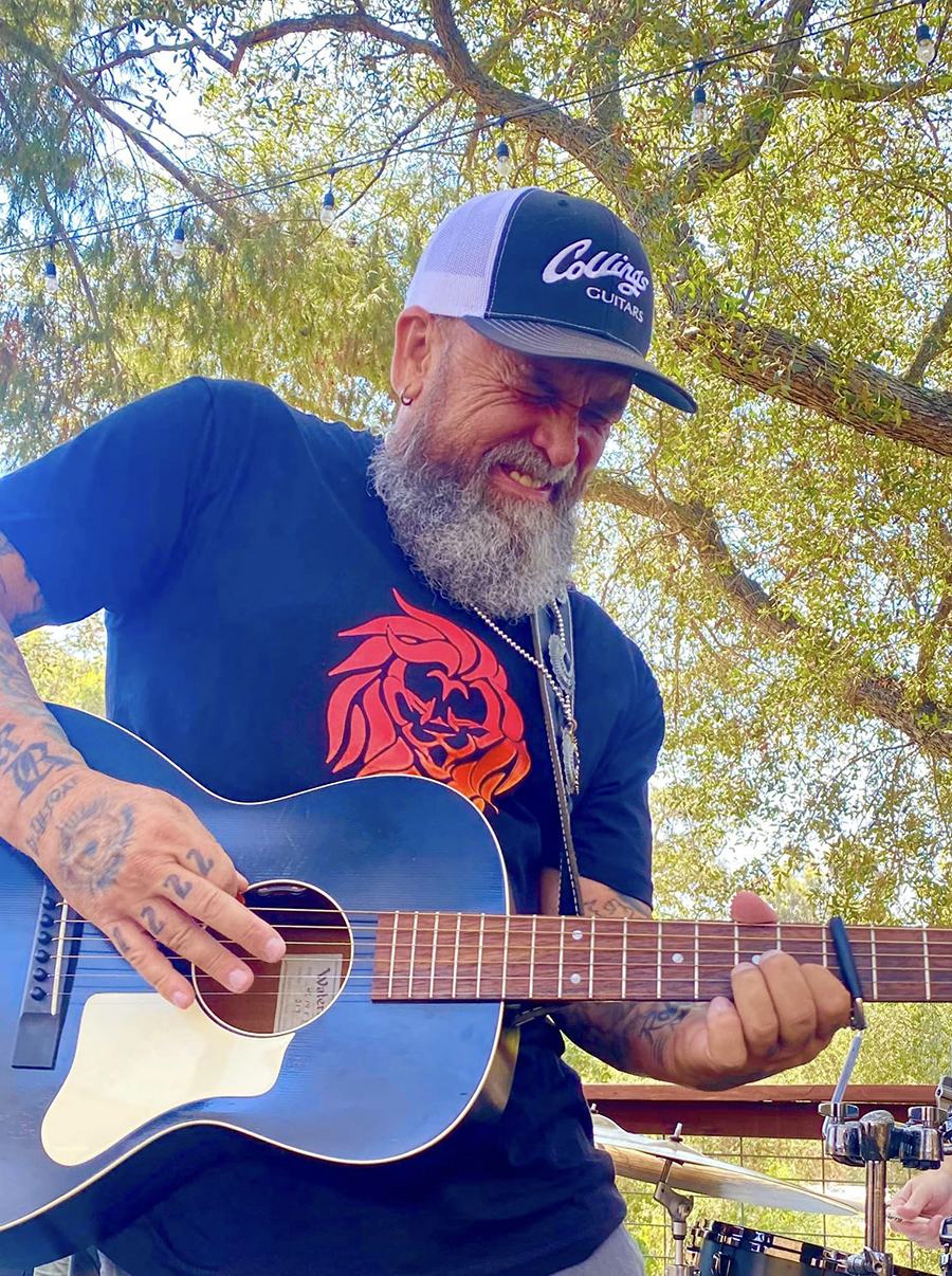 Venturing downtown quite a bit in his off hours, Houston passed a pawn shop one day, where an item there piqued his interest. “It was an electric guitar,” he mused, “an instrument I always wanted to play…I spent a lot of idle time in my hotel room, so I figured it was a good time to learn guitar,” he continued. “I taught myself the intro notes to ‘Wish You Were Here’ and that got me going, even though I didn’t take any guitar lessons.” His brother-in-law, Rich Ortega, had an acoustic guitar that he turned Houston on to. “I liked playing the acoustic more than the electric; the electric sounded thinner as opposed to the full sound of the acoustic,” he emphasized. At Ortega’s suggestion he started learning Johnny Cash tunes. “That was perfect because it taught me how to play simple chords. My first live performance with guitar was at an Amtrak Christmas event along with an engineer that sang a bit,” he chuckled. “We added a bassist and drummer and made it through with me playing a finale of Jimi Hendrix’s version of the ‘Star Spangled Banner,’ he remembered infamously.