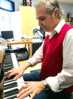 “I had two piano instructors in college, Dr. Frank Marks and Dr. Deborah Clasquin. They were both wonderful but had very different teaching styles. Frank was very strict, with a heavy diet of technique and sight-reading built into his prescribed practice regimen. I had heard stories from other students where they had shown up to a lesson unprepared and he had simply left the room, telling them that having a lesson was a waste of his time if they hadn’t practiced that week. So, partly out of fear, I was always prepared for my lessons. My freshman year, studying with Frank, I won the university’s concerto/aria competition and performed a Mozart concerto with the school orchestra. The disciplined approach to music and practicing that I learned from him is something I’ll always be grateful for. Sadly, Frank passed away the following year from cancer. I began studying with Dr. Deborah Clasquin; Deborah had been a student of Pressler’s at Indiana University and was really focused on interpretation and tone color. I didn’t study any piano technique with her at all, we only worked on repertoire. Deborah really opened up my ear to all of the tone colors and articulations possible on the piano.