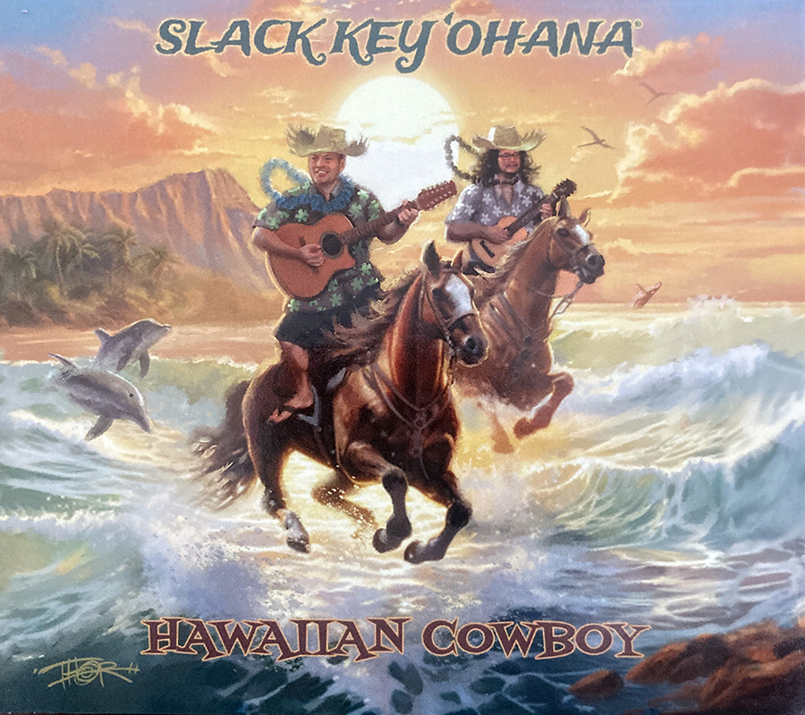 Hawaiian Cowboy is the third album from Slack Key ‘Ohana, fronted by the songwriting team of Kamaka Mullen and Brian Witkin. The 13 tracks include nine original tunes in addition to a quartet of Hawaiian standards. The album has an eclectic islands and country music vibe intersecting throughout the tracks, with the distinctive sound of steel guitars from Witkin and Rand Anderson, which permeates both styles, although the musical highlight throughout are the mellifluous lead vocals and vocal harmonies, led by Mullen and a handful of guest vocalists.