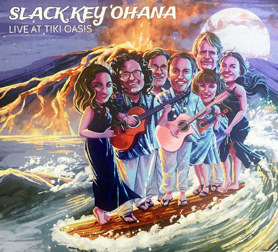 Slack Key ‘Ohana’s island sounds proved to be the perfect soundtrack for an afternoon under the sun and palm trees at the world’s largest Tiki-themed event. Though a relatively new group, the combo has quickly become festival favorites around Southern California, noted for their production values. For the band’s bigger events, their shows not only feature the larger lineup, they also include hula dancers and storytelling elements that add to the fun. For the Live at Tiki Oasis release—minus the dancers—you truly get the whole concert. There are a total of 33 tracks on the album, with half of those being brief intros and song stories. Close your eyes, sip a pineapple drink, and you are there. When listening to the album, it’s important to note that no audio sweetening was used. The whole thing is so well recorded and the band so tight, particularly on the harmonies, that Live at Tiki Oasis sounds like a studio recording, those aforementioned spoken passages and bits of audience applause between songs being the only real indicators that this is a concert album. The vocal arrangements are particularly impressive.
