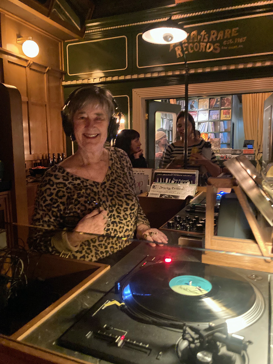 Sue Palmer as guest dj one night last month. Photo by Liz Abbott.