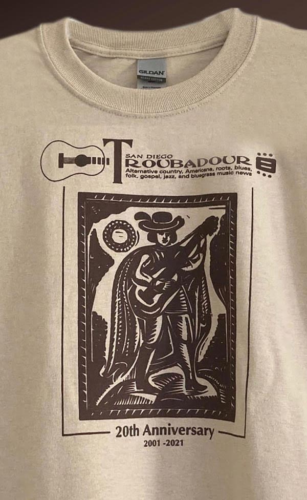 Troubadour Merchandise Share Tweet 2023 Holiday Celebration & Fundraiser This event is sold out, but you can still donate to San Diego Troubadour all year long! Donate Today 20th Anniversay Troubadour T-Shirt $20, includes tax and shipping.One style, one color. Please indicate the size you want below. Select size below... Medium $20.00 USD Large $20.00 USD XL $20.00 USD XXL $20.00 USD Advertisements
