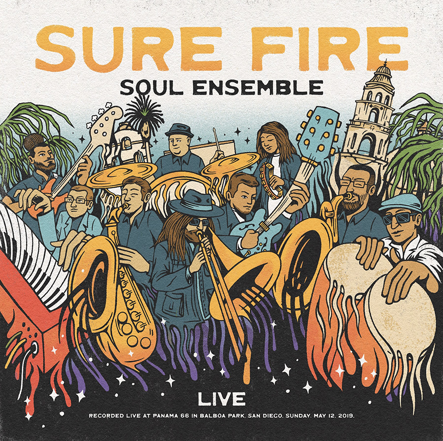 Recorded live, in 2019, at Balboa Park’s Panama 66, the Sure Fire Soul Ensemble released their fifth full-length album to a sold-out crowd at Winstons on April 28th of this year. The pre-pandemic recording went through some obvious delays with their main working label, Colemine, but eventually SFSE released Live at Panama 66 on Felten’s new label, which he started with friend Mitchum Yacoub of All Town Sound. Felten is responsible for assembling the Avenger-like team of monster musicians who make up the band and is also credited as engineer and mixer on the album. Enough cannot be said of what an impression was left on me from the mixing alone. Multiple times throughout my listenings, I was reminded this was a live album, legitimately surprised by the clapping between songs.