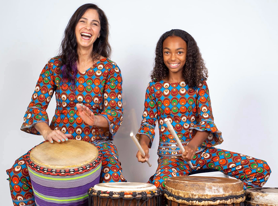 Nasira, who will be 17 next month, got to have life experiences that few her age may never have in their lifetime. “She’s been around the world, over 20 countries in all, always being around drumming,” Marino reflected back. “She grew up listening to the language of djembe. She’s lucky because drumming is a language. I used to walk hand and hand with her, in step, singing rhythms to the time of our step. When she was three years old, she would come over to my drum set and grab the sticks out of my hand and have no problem doing a basic drumbeat. She started coming with me to the classes I was teaching and at five years old I had her accompany me on the dunun drum, which accompanies the djembe drum.” Flash forward to the present and the tradition continues. “We just got booked for workshops in Spain this year on Labor Day weekend where we both will be performing and teaching. Last summer we went to Ireland and England and performed duets. It’s just a beautiful thing to see,” Marino said. “She’s carrying a large legacy; she’s the daughter of probably the most famous djembe player, her dad.” Mother and daughter are now carrying on the tradition that came from Mamady Keita who passed away in 2021. “He entrusted me with that mission to carry on his culture, to talk about it and show the beauty in it,” Marino concluded.