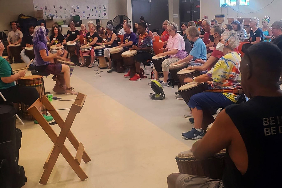 Quite the superwoman in her musical and life’s journey, Marino has accomplished an abundance of joys and satisfaction as a mother, musician, and especially as a teacher, spreading the cultural message of the djembe drum to the many students who are introduced to a whole new realm of percussion.