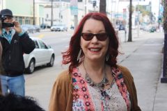 Near dusk, the Pamela Des Barres I’m With The Band Rock Tour pulls back into the station, along a side street at Amoeba Records. We are standing along the Sunset Strip at sunset! The group of kindred spirits that gathered earlier in the day is now a well-seasoned crew of travelling companions. They all bid adieu to Pamela, many with prolonged hugs. They have all travelled back to “Hollywood, 1968” and returned.